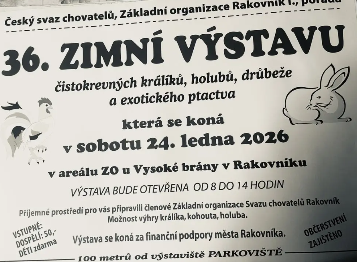 VChovatelé i široká veřejnost se mohou těšit na tradiční 36. zimní výstavu chovatelů v Rakovníku, která proběhne v sobotu 24. ledna 2026. Akci pořádá Český svaz chovatelů – Základní organizace Rakovník I. a nabídne pestrou přehlídku čistokrevných králíků, holubů, drůbeže a exotického ptactva.